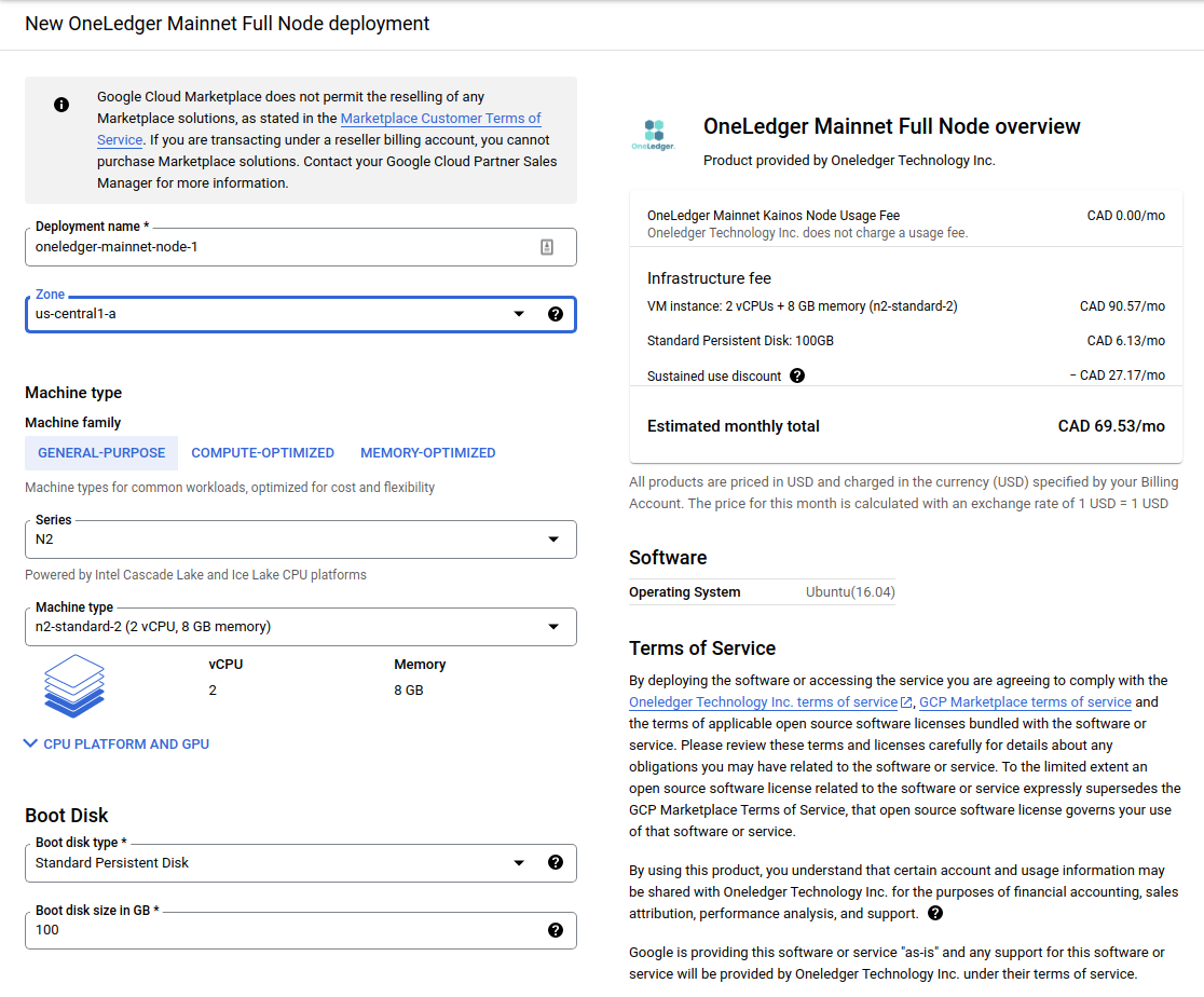 Click on Launch and deploy OneLedger Mainnet Fullnode.