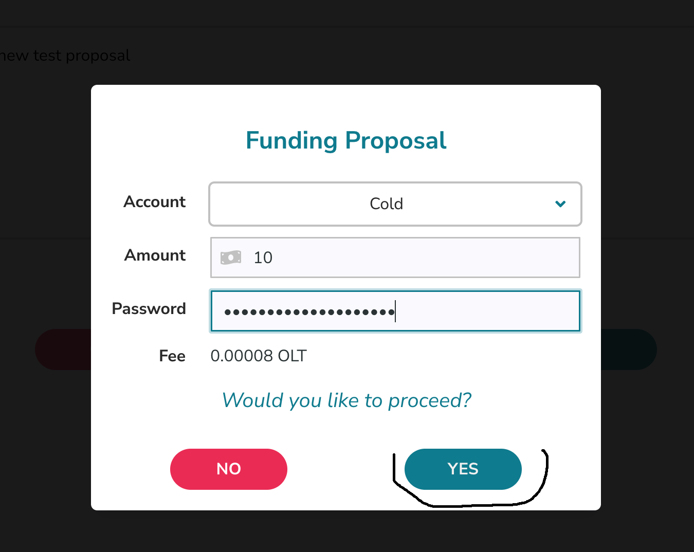 - On a Funding proposal form, submit an amount, which you wants for voting and click on yes
