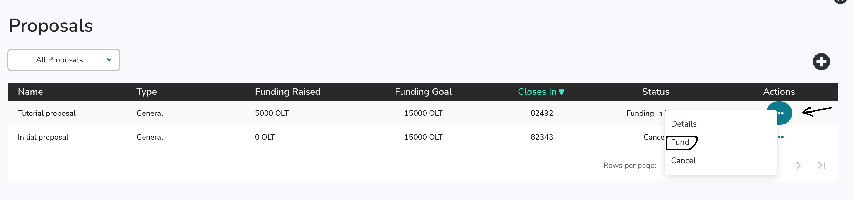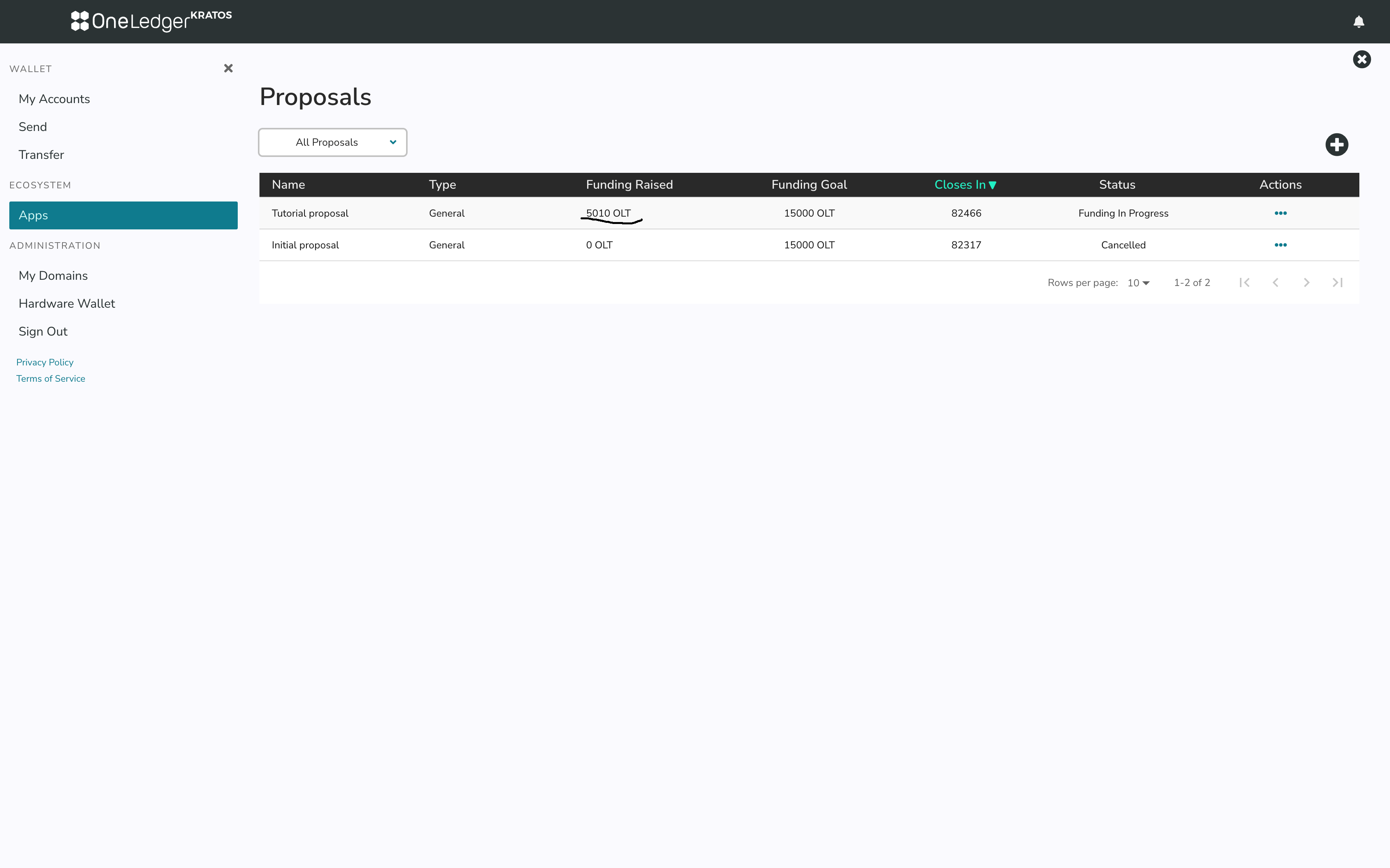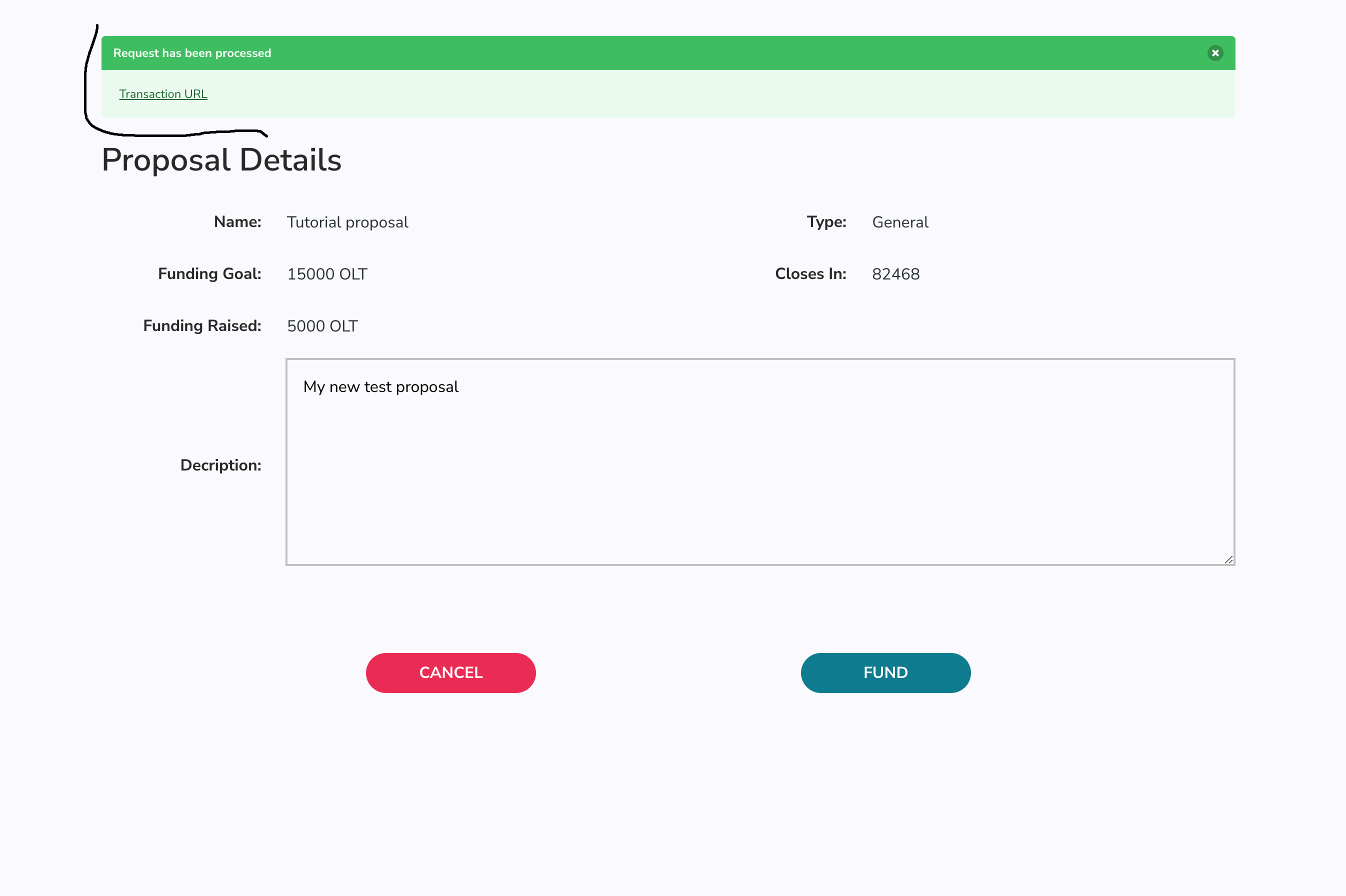 - Go back to the proposals app and you will see an updated amount for funding raise