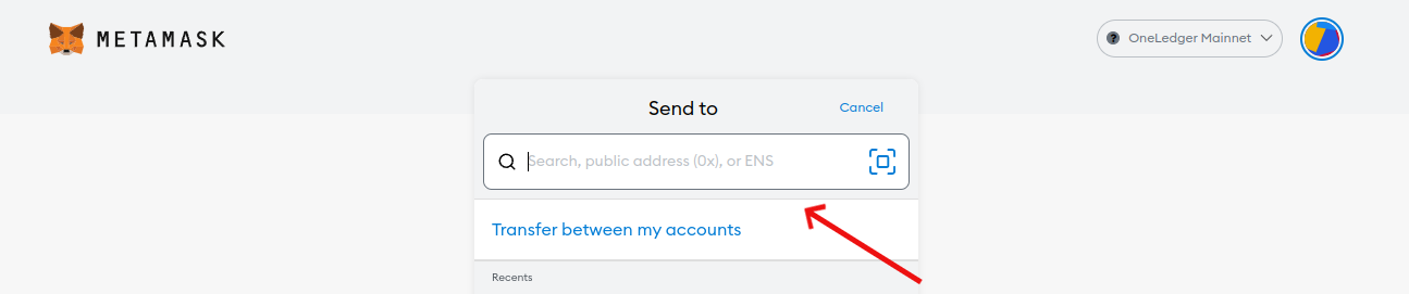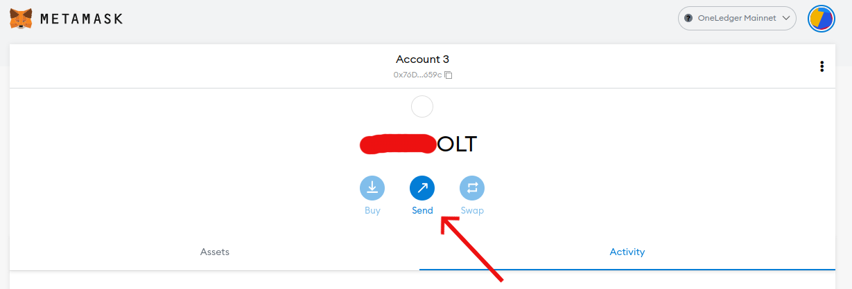 - Now click on Send in your metamask and paste your Onewallet 0x address.